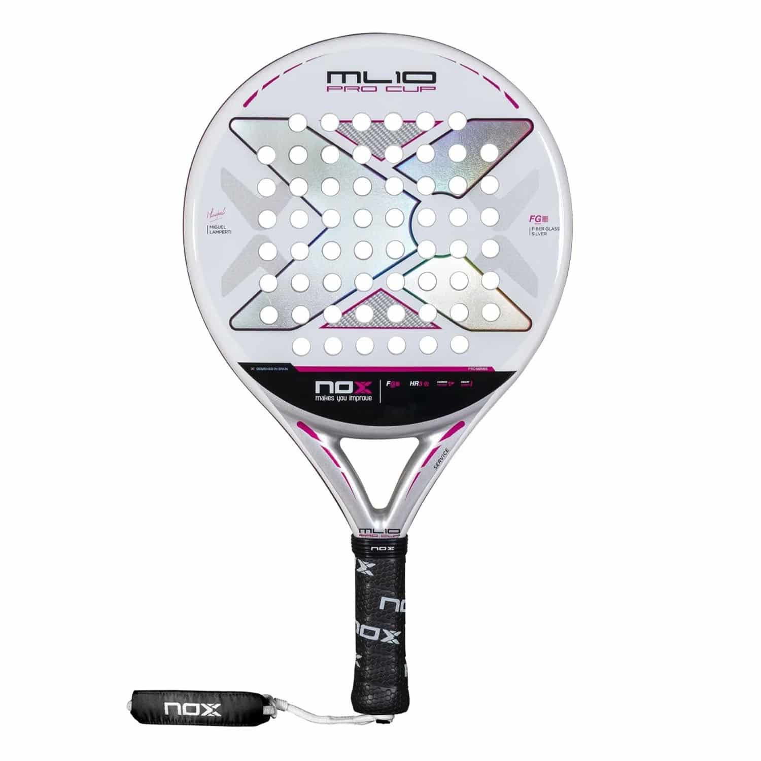 Miguel Lamperti imzalı ve Arjantinli kürek oyuncusuyla işbirliği içinde tasarlanan NOX ML10 Pro Cup Silver, her seviyedeki oyuncuya maksimum hafiflik sunan kontrollü bir padel raketidir .